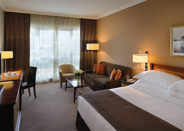 Hyatt Regency Dubai - Corniche is situated in the heritage district, just a 5-minute walk from gold and spice souks. The hotel features elegant rooms, a rooftop revolving restaurant, and a variety of dining options, including genuine Japanese cuisine. Guests can unwind at the Club Olympus Spa and Fitness, with modern gym and tennis courts. Conveniently located 45 minutes from Dubai International Airport.